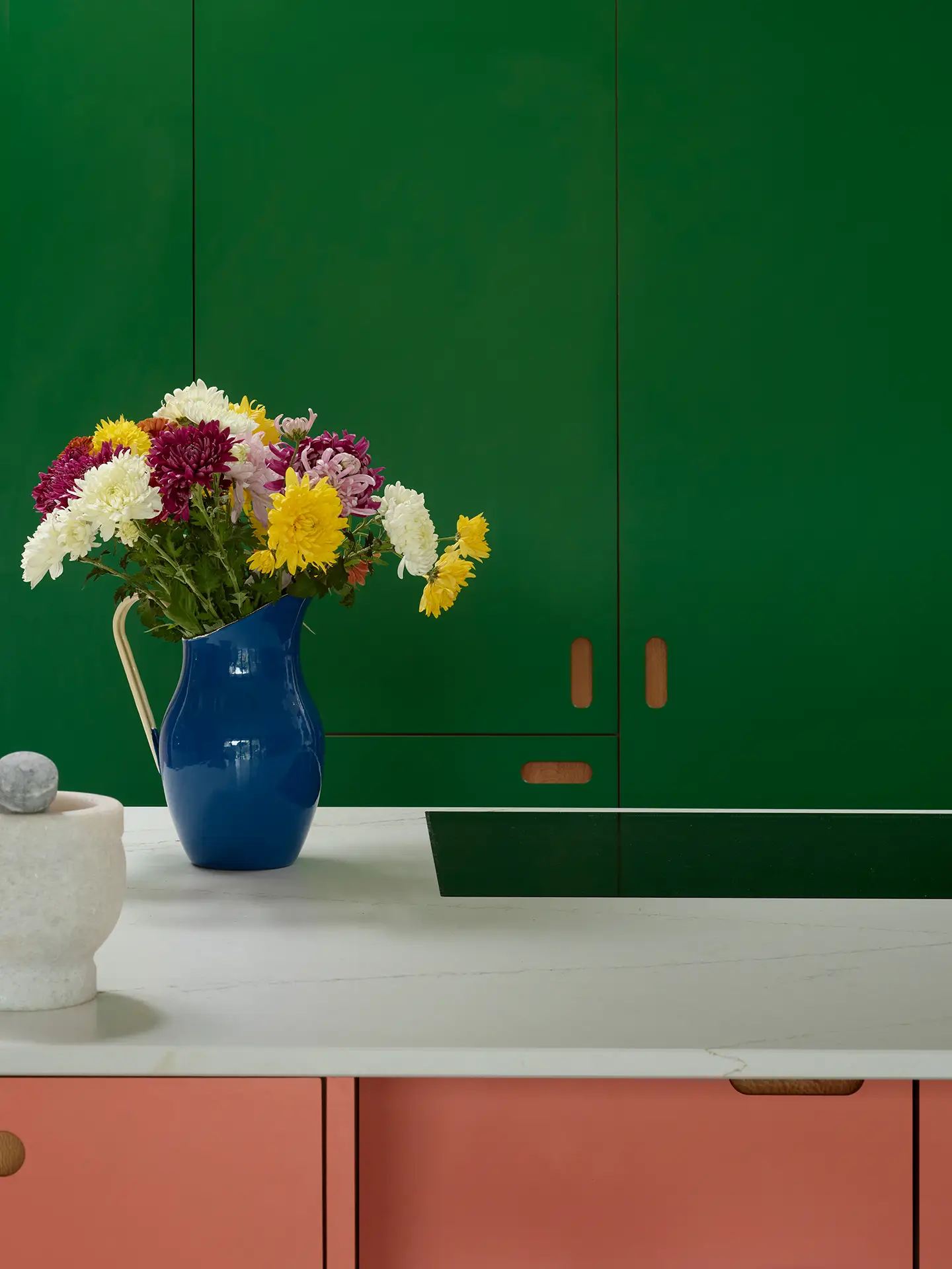 We have curated two colour collections, Eco Colours and Core Colours. The latter is high pressure laminate, a technical name that belies the softness of these finishes. The former is the next generation of kitchen surface materials, silken and matt, carbon neutral hues.