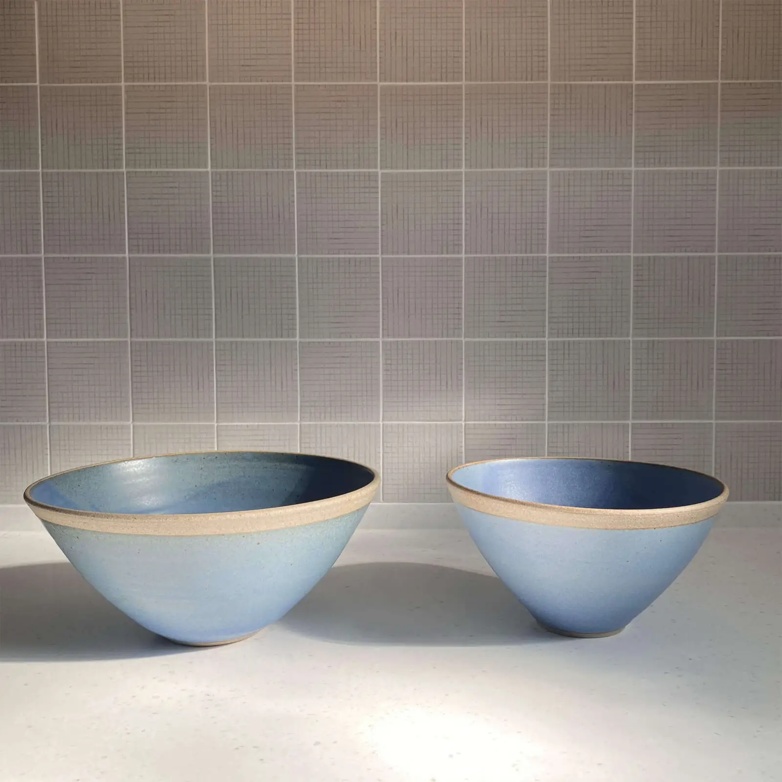 The pieces are simple with a serene and understated beauty. The glazes are composed of basic raw materials and the blue, straw and jade colours have a delicate quality thanks to the gentle speckling and line of unglazed clay.